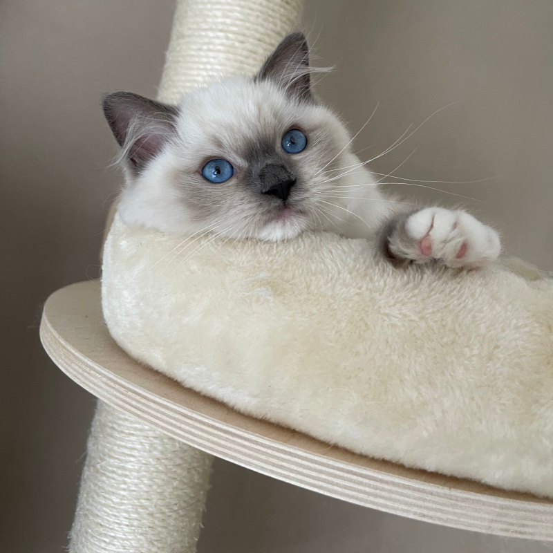 Colonia, ons eerste Ragdoll meisje. Ze komt uit Zweden, heeft een mooie mix tussen Europese / Scandinavische en Amerikaanse lijnen en ze is óntzettend lief.