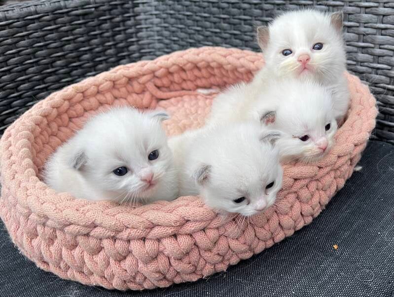 Pandora heeft 2 september vier kittens gekregen (drie bicolour en 1 mitted). Ze doet het super goed en is echt een geweldig moedertje. Ze is zo lief en zorgzaam.